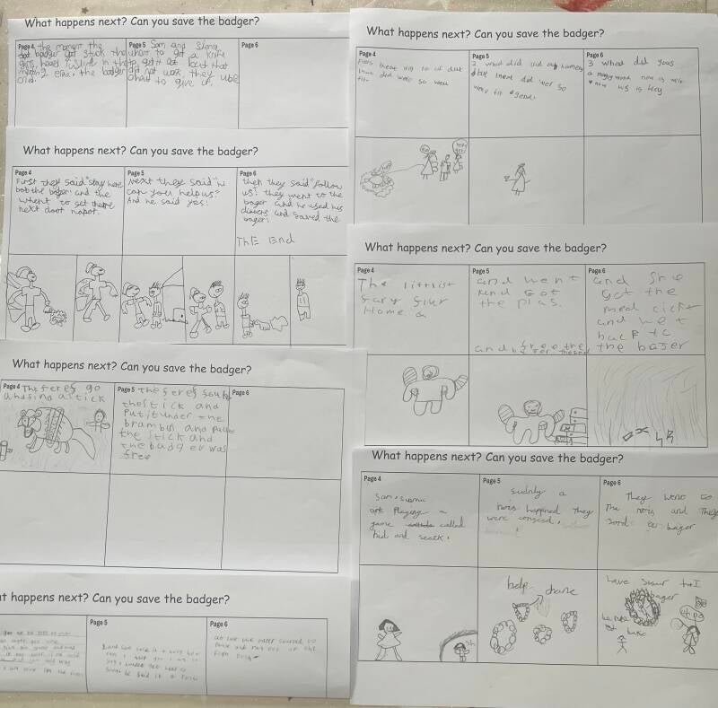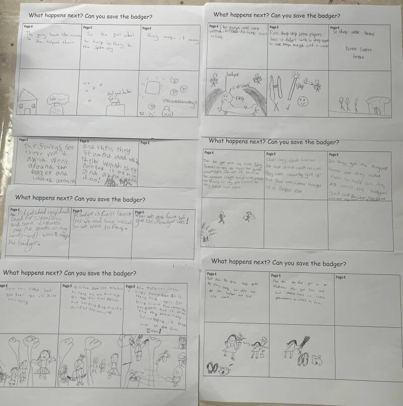 An interactive assembly was quickly followed by a visit with St Michaels youngest pupils who were all dressed up as their favourite book characters. I then had the treat of working with Years 1 and 2 as they created new characters or even a fresh ending for my story Bob the Badger's Prickly Problem.